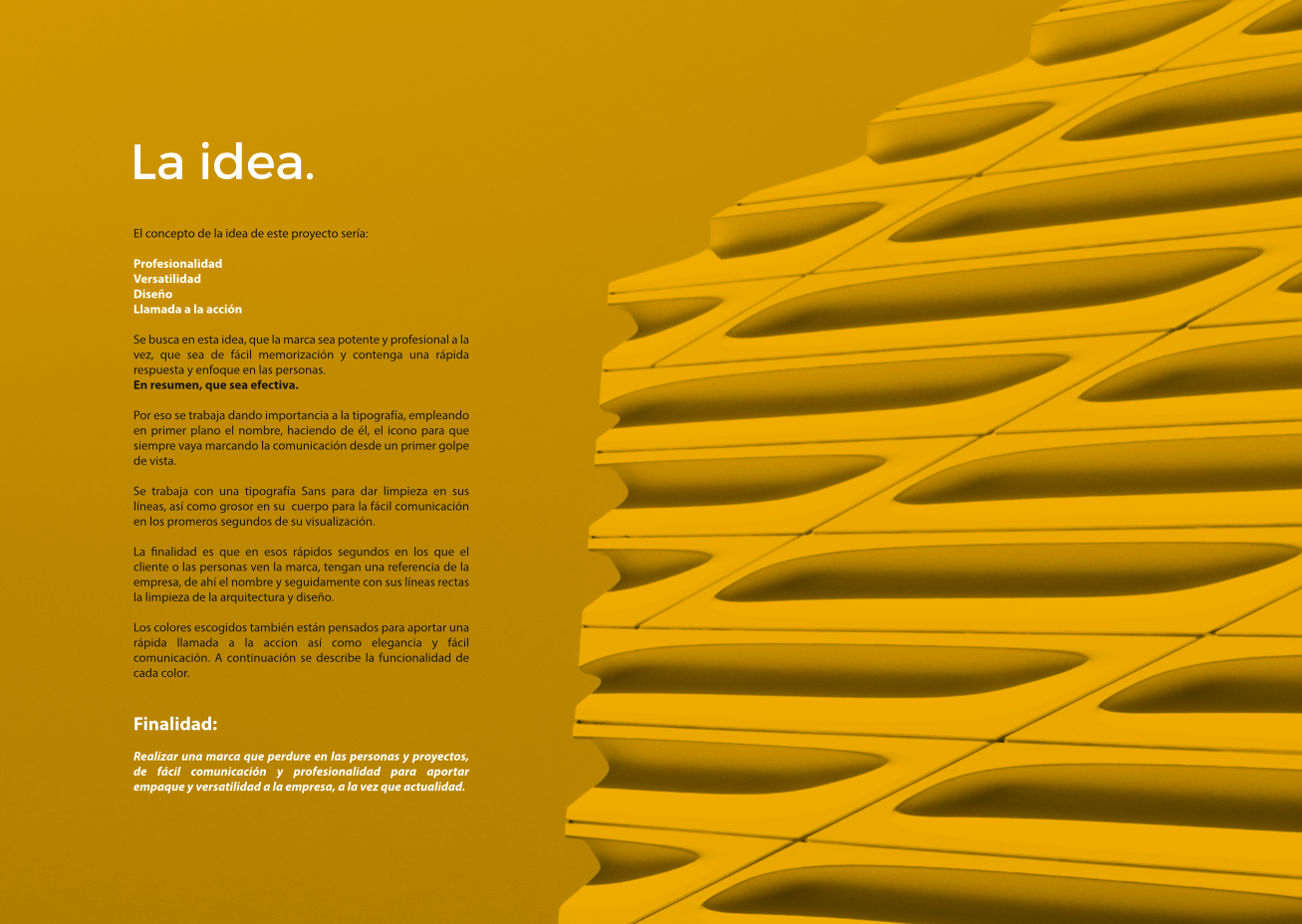 Este es un trabajo en el que desde cero, el cliente confía en el proyecto y dando sus puntos fuertes como «Eficacia, Solvencia, Arquitectura«… deja que el trabajo fluya para obtener de él lo más enfocado para su marca. Edificaz es una empresa de arquitectura formada por tres técnicos y que proyecta una fuerte experiencia y solvencia a sus trabajos. Están ubicados en Alicante capital y destacan por sus especiales y técnicos trabajos.